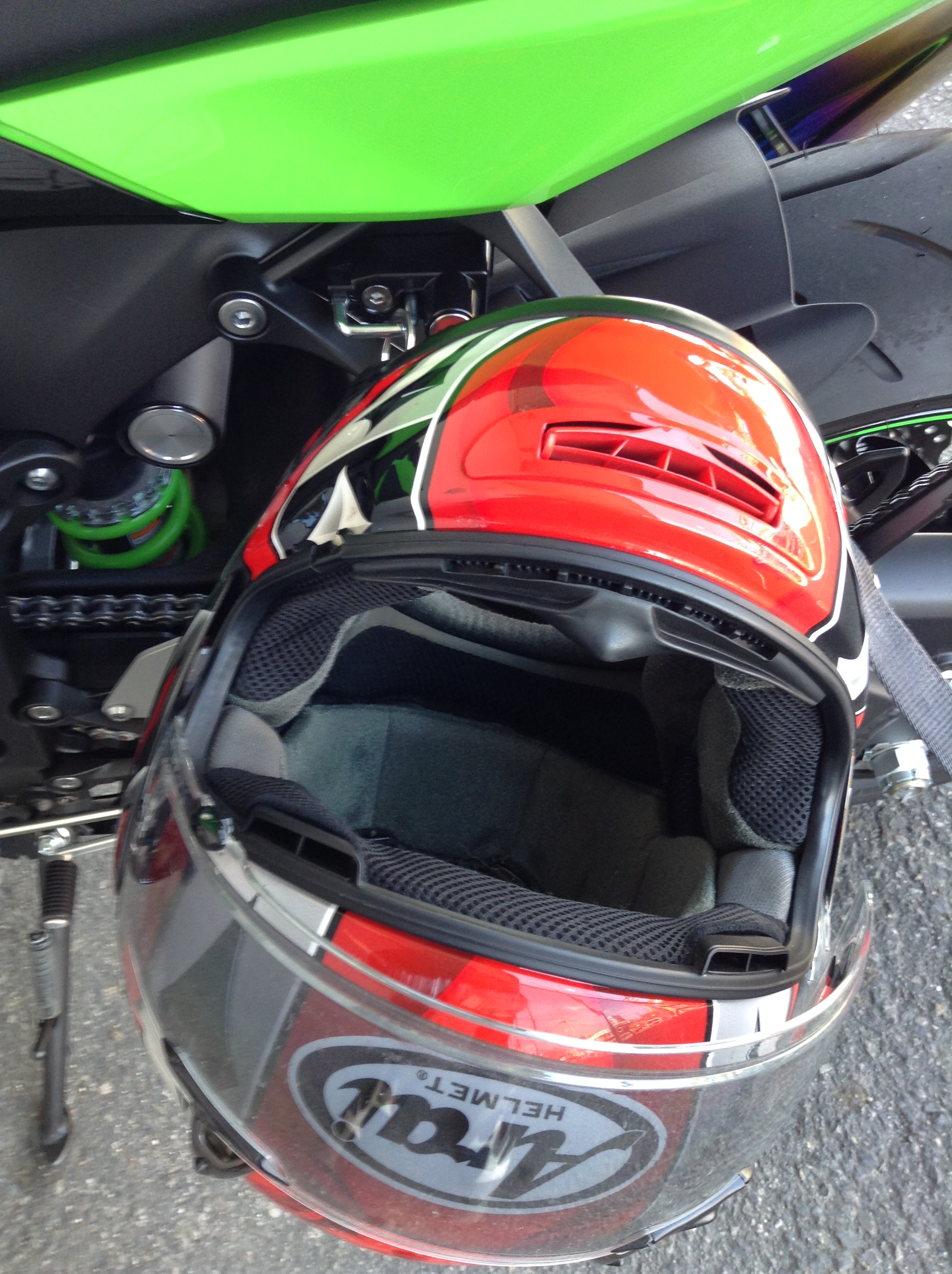 取り付け後は、バイク降りたときにヘルメットの置場を迷うことなく